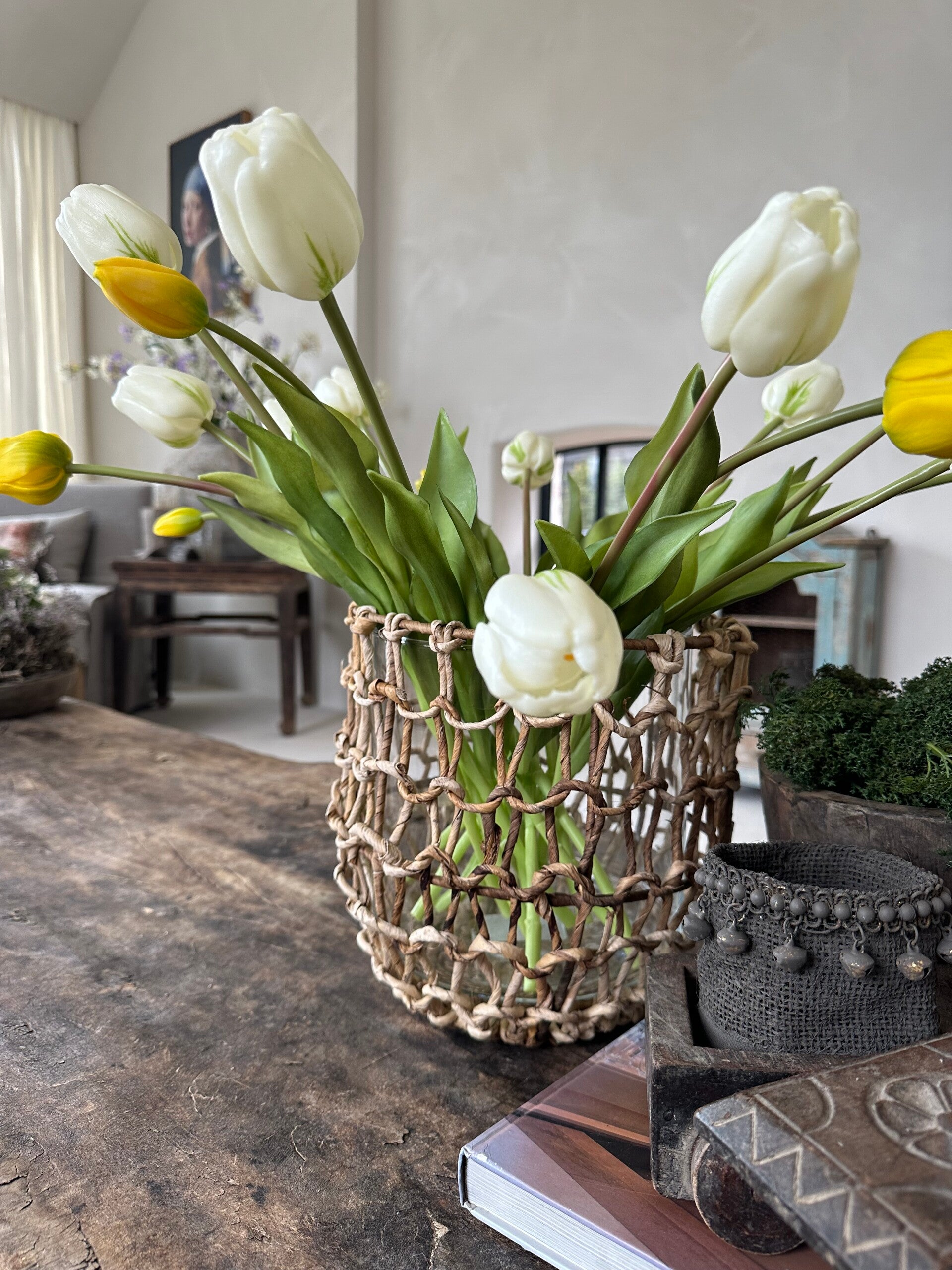 Inclusief een glazen windlicht/vaas dat in de lantaarn past.