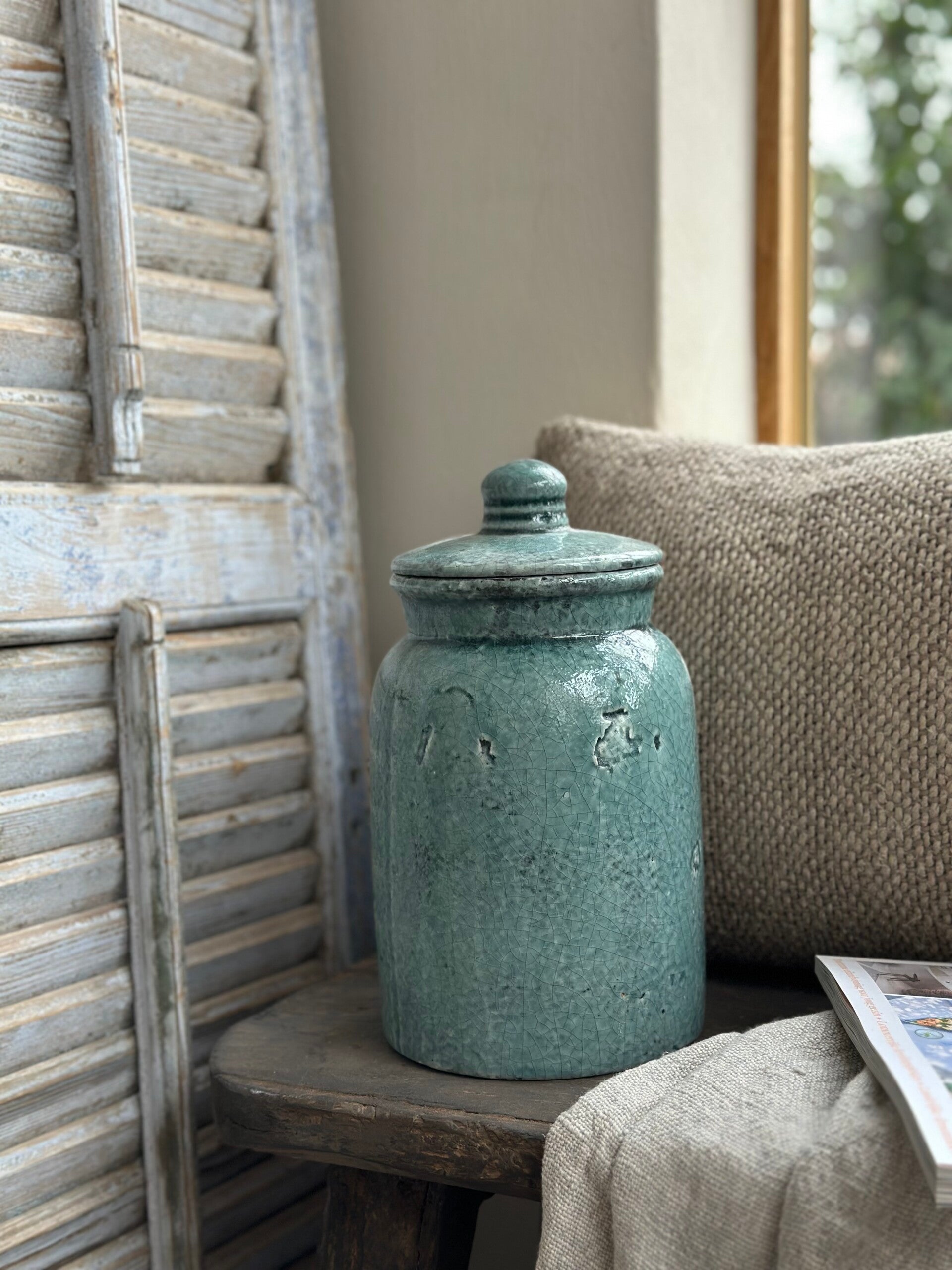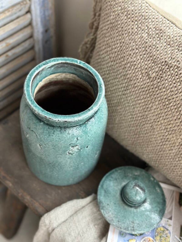 Mooie blauwkleurige pot.